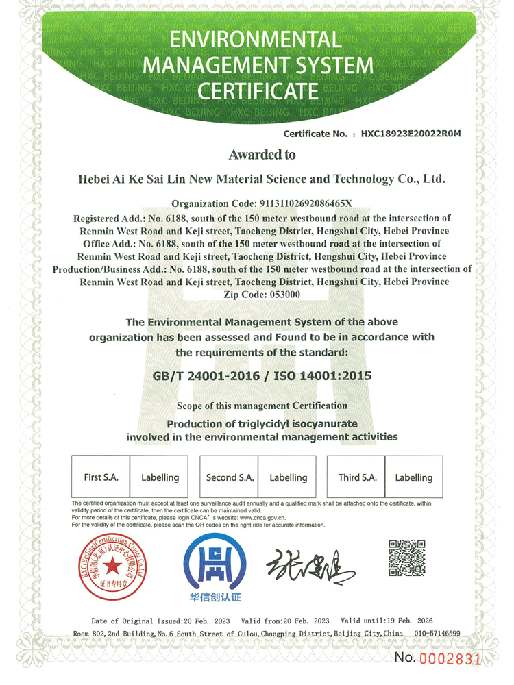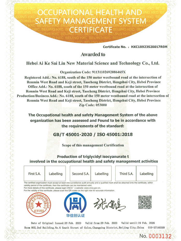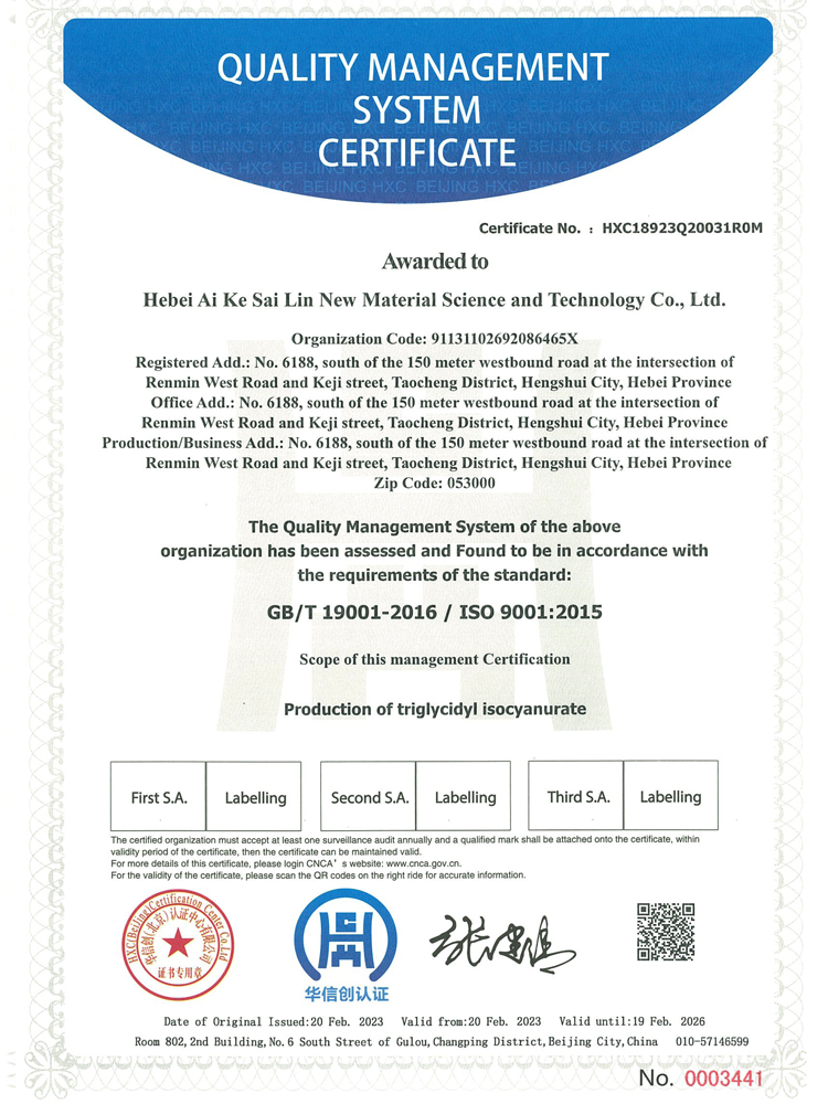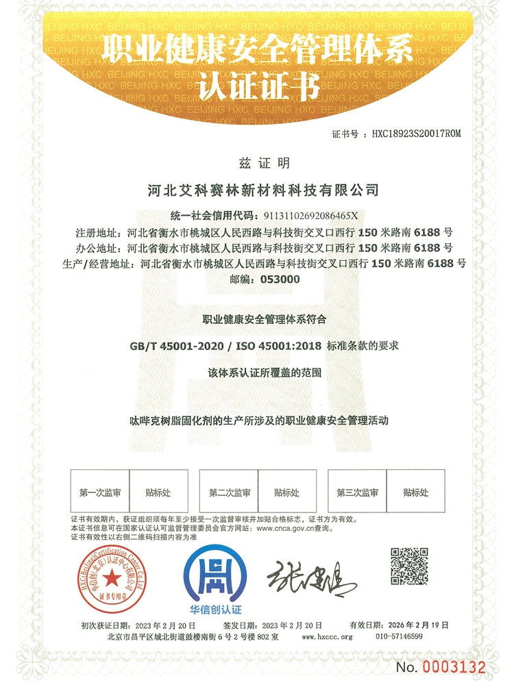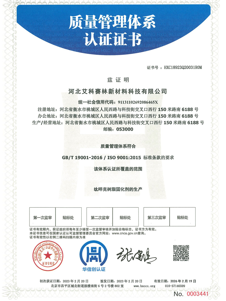 河北艾科賽林新材料科技有限公司成立于2009年,坐落在河北衡水桃城省級(jí)高新技術(shù)產(chǎn)業(yè)園區(qū),占地100畝,注冊(cè)資金2500萬元,是一家以粉末涂料固化劑及高性能特種材料研發(fā)、生產(chǎn)、銷售為一體的高新技術(shù)企業(yè)。在激烈的市場(chǎng)競(jìng)爭(zhēng)中不斷壯大,產(chǎn)品憑借良好的信譽(yù)與精益求精的工藝,在市場(chǎng)中取得良譽(yù)和好評(píng)。公司已通過ISO9001質(zhì)量管理體系,IS014001環(huán)境管理體系、ISO45001職業(yè)健康安全管理體系。公司被認(rèn)定為“高新技術(shù)企業(yè)”,河北省“專精特新”中小企業(yè),先后獲得河北省行業(yè)“技術(shù)創(chuàng)新先進(jìn)企業(yè)”,桃城“校企合作創(chuàng)新優(yōu)秀企業(yè)”、畝均“納稅貢獻(xiàn)先進(jìn)企業(yè)”等榮譽(yù)稱號(hào)......